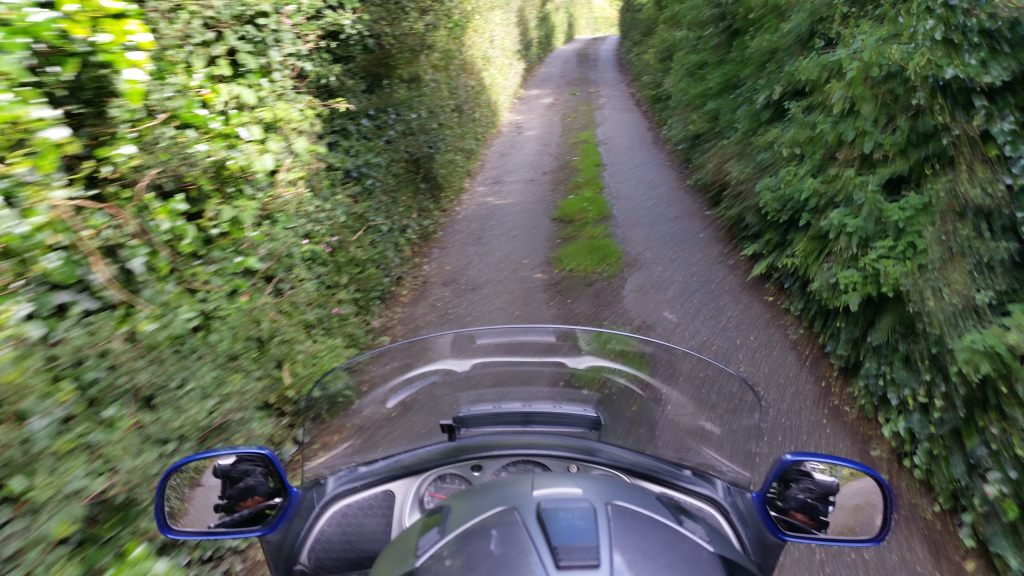Da der Wetterbericht nicht unbedingt ideales Wetter für Töfffahrer voraussagte, schauten wir, dass wir noch rechtzeitig unsere Unterkunft erreichen konnten. Auf dem Weg dorthin führte uns das Navi durch Strassen, die nicht unbedingt goldwingwürdig waren. Auf einer dieser schmalen Strässchen passierte es dann. Plötzlich rutschte das Hinterrad weg. Die Strasse war feucht und von Moos bedeckt.
