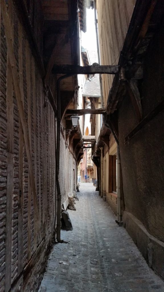 Trudi machte sich nach dem Bezug unseres Zimmers auf, um die Altstadt zu erkunden. Ich legte mich hin, um mich zu erholen. Wir hatten abgemacht, dass sie eine schöne und gute Adresse zum Essen sucht und mir dann die Informationen dazu schickt. Das tat sie dann auch. Mit Hilfe des Handys machte ich mich dann auf die Suche. So enge Gässchen, wie ich sie nun in Troyes sah, hatte ich schon lange nicht mehr gesehen.