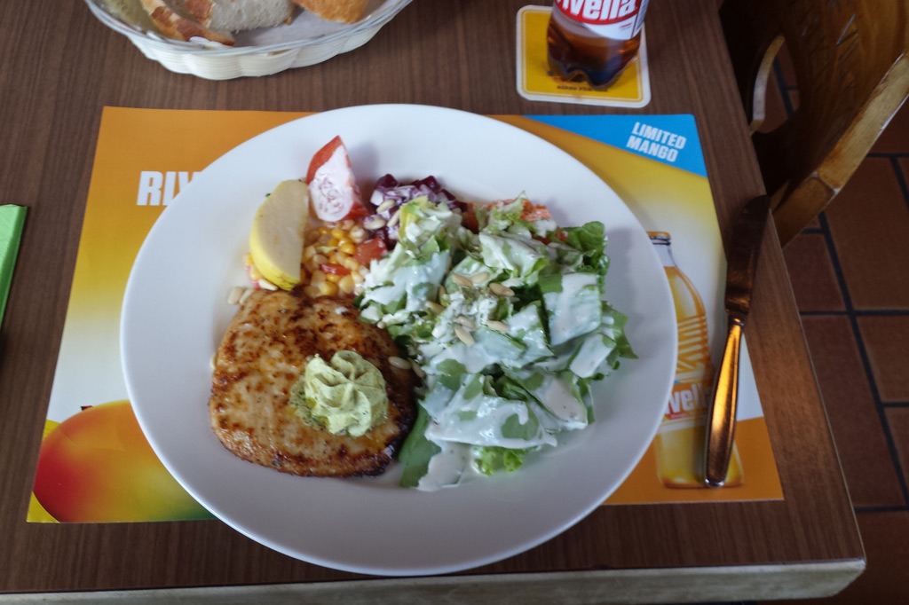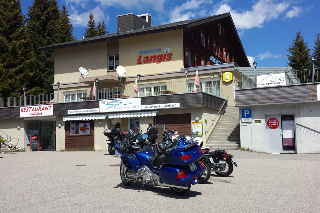 Nun führt die die Fahrt über Sörenberg in die Biosphäre Entlebuch. Bei Schüpfheim treffe ich auf die Hauptstrasse, die ich vor vielen Jahren (rund 35 Jahren) sehr häufig befahren habe. Mit einer 125er fuhr ich damals von zuhause nach Matran ins Internat. Was waren das noch für Zeiten . Wind und Wetter machten nichts aus. Ja ja. Aber zurück auf die Hauptstrasse. Eingangs Entlebuch meldet das Navi: „Nach 100 Metern bitte rechts abbiegen“. Hätte ich auch gewusst. Zwei Biker folgen mir bei dieser Abzweigung. Die lasse ich dann bei Gelegenheit vor. Sie sind sicher schneller als ich. Doch nichts wird daraus. Wie auch ich fahren sie wahrscheinlich lieber jemandem hinterher. Man sieht dann nämlich an den Bremsleuchten besser, was hinter der nächsten Kurve lauert. Zwei, drei Autos überhole ich dann doch noch. Die fahren ja auch sehr, seeehr gemütlich. Ich halte nicht auf der Passhöhe an. Es zieht, und die Sonne versteckt sich immer wieder hinter Wolken. Also, nächster Stop beim Restaurant Langis.