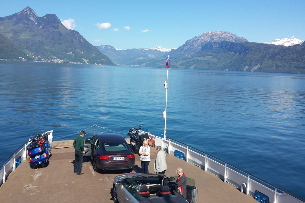 Nach diesem guten Essen und einem Espresso geht es wieder zurück Richtung zuhause. In Beckenried mache ich dann wieder Halt bei einem Kaffee, um mir die Zeit bis zur Überfahrt zu vertreiben. Bis kurz vor dem Start scheint es, dass die Fähre nur für zwei Motorräder fahren würde. Doch kommen dann noch zwei Autos und einige Fussgänger dazu.